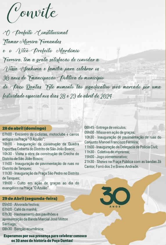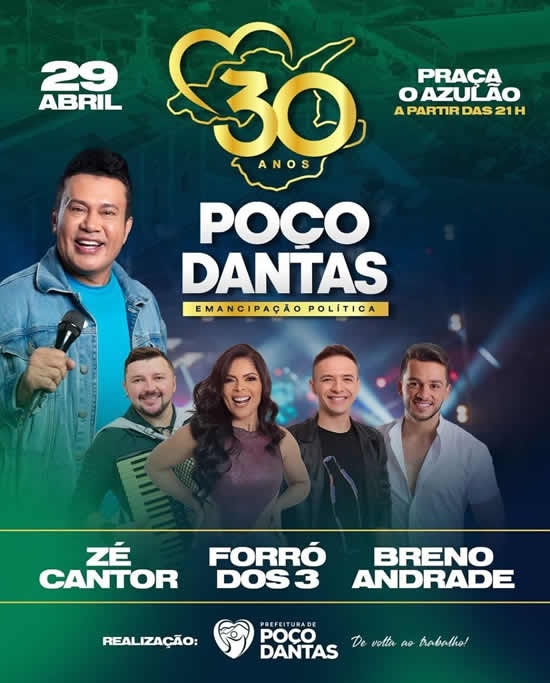 A Prefeitura de Poço Dantas anunciou a programação das festividades de comemoração dos 30 anos de Emancipação Política do Município.
